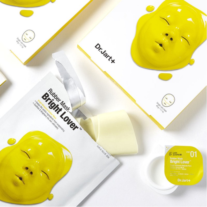 Dr.Jart + Dermask Rubber Mask Bright Lover не вимагає змішування інгредієнтів, в упаковці знаходиться капсула з активним засобом під маску і альгінат. Б'юті-процедура із застосуванням Dermask Rubber Mask Bright Lover покращує колір обличчя, відновлює текстуру шкіри, підвищує її тонус і рівень вологи в клітинах, вирівнює рельєф, покращує пружність і еластичність, нейтралізує сліди втоми, почервоніння та інші похибки. У складі активного засобу під маку знаходиться вітамінний комплекс - А, В, С, Е, екстракт грейпфрута. Альгинатное покриття складається з екстракту морських водоростей.